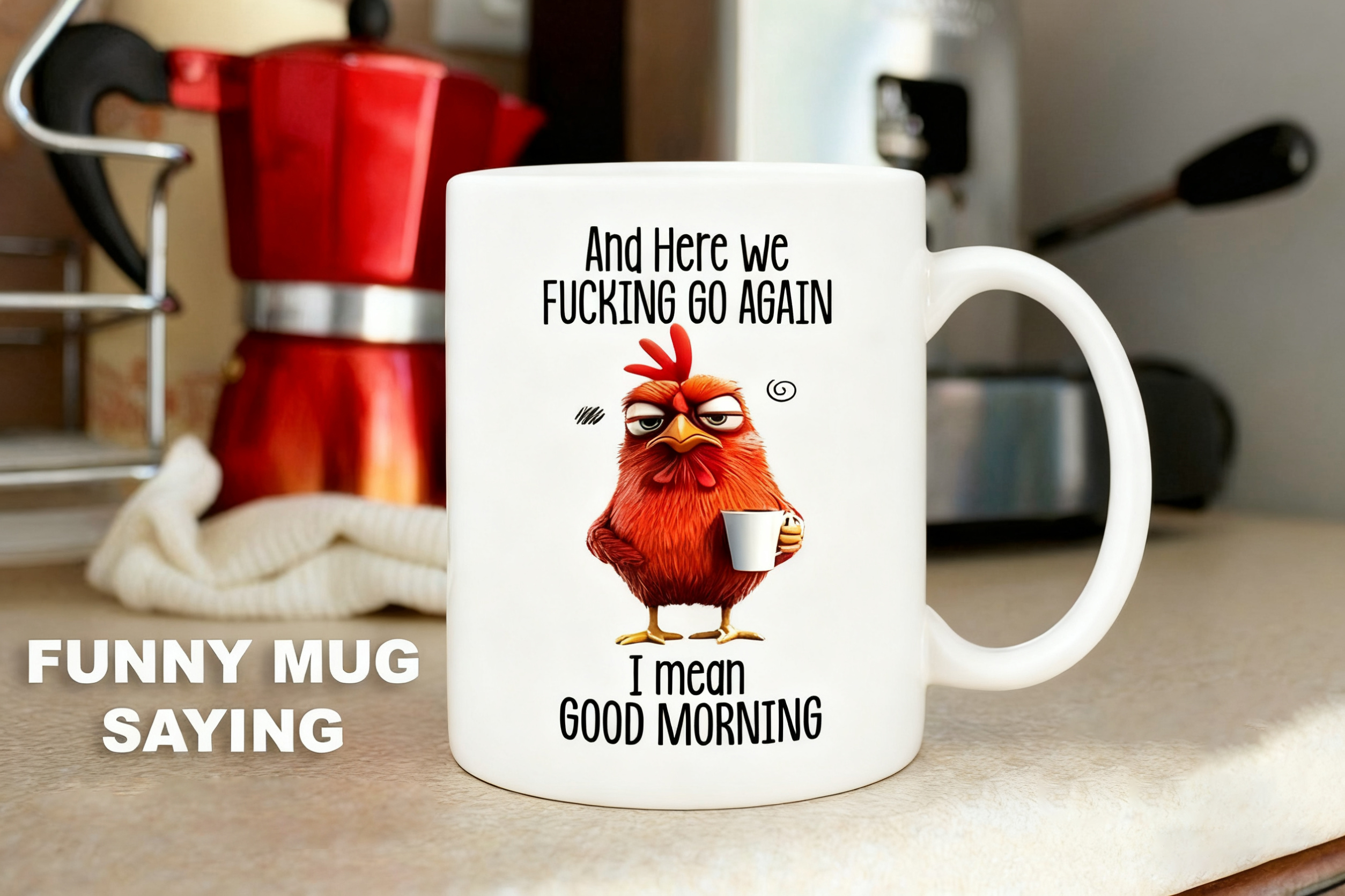Funny Mug – Here We F*cking Go Again I Mean Good Morning Coffee Cup